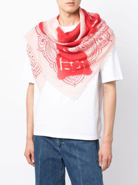 Greco-print lightweight scarf red/white cashmere-silk blend signature Greca-pattern print abstract pattern print lightweight construction finished edge Made in Italy Composition Cashmere 65%, Silk 35% SIZE & FIT Model measurements Height 6 ft 2 in(1.87 m) Bust/Chest 34.25 in(87 cm) Hips 36.22 in(92 cm) Waist 29.52 in(75 cm) Measurement LENGTH 52.75 in(134 cm) WIDTH 51.18 in(130 cm) Washing instructions Dry Clean Only