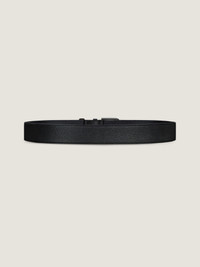 - Long belt in grained calfskin leather. - Square buckle. - Silvery-finish metal details. - Width: 1.6 in.