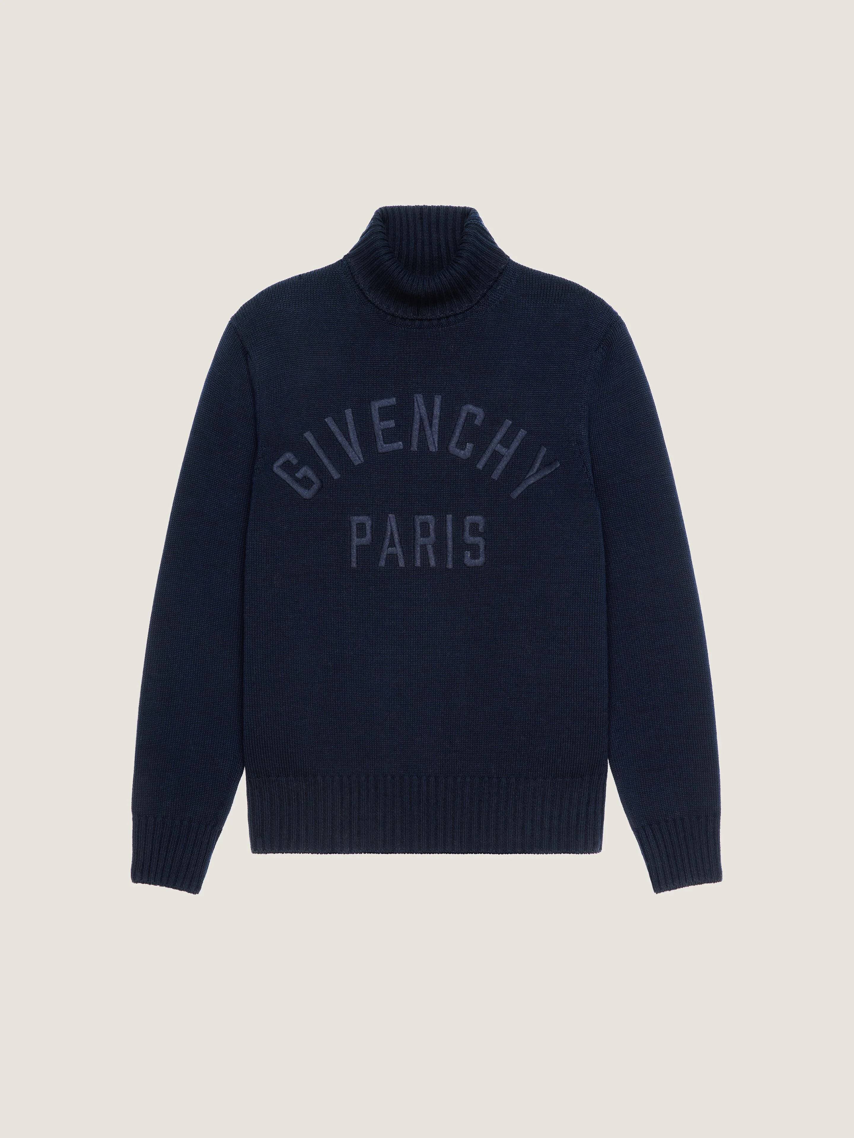 - Long-sleeved sweater in cotton. - Turtleneck. - GIVENCHY Paris signature embroidered on the front. - Model measures 6.1 Feet and wears a size M.