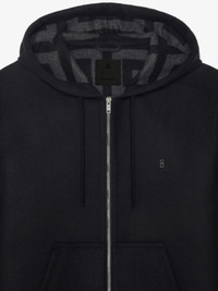 - Hooded sweatshirt in double face wool. - Lining with big 4G all over pattern. - Drawstring on the hood. - Zipped closure. - One kangaroo pocket on the front. - Classic fit. - Model measures 73.2 in and wears a size 48.
