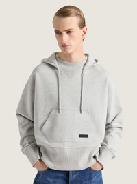 - Long-sleeved hooded sweatshirt in fleece. - Gros grain patch with GIVENCHY signature and zigzag seams on the front pocket. - Drawstring on the hood. - One kangaroo pocket on the front. - Ribbed hem and cuffs. - Model measures 6.1 Feet and wears a size M.
