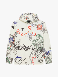 - Hoodie in soft fleece with multicolored graffiti print on the front and back. - Drawstring with GIVENCHY metal tips on the hood. - One large pocket on the front.