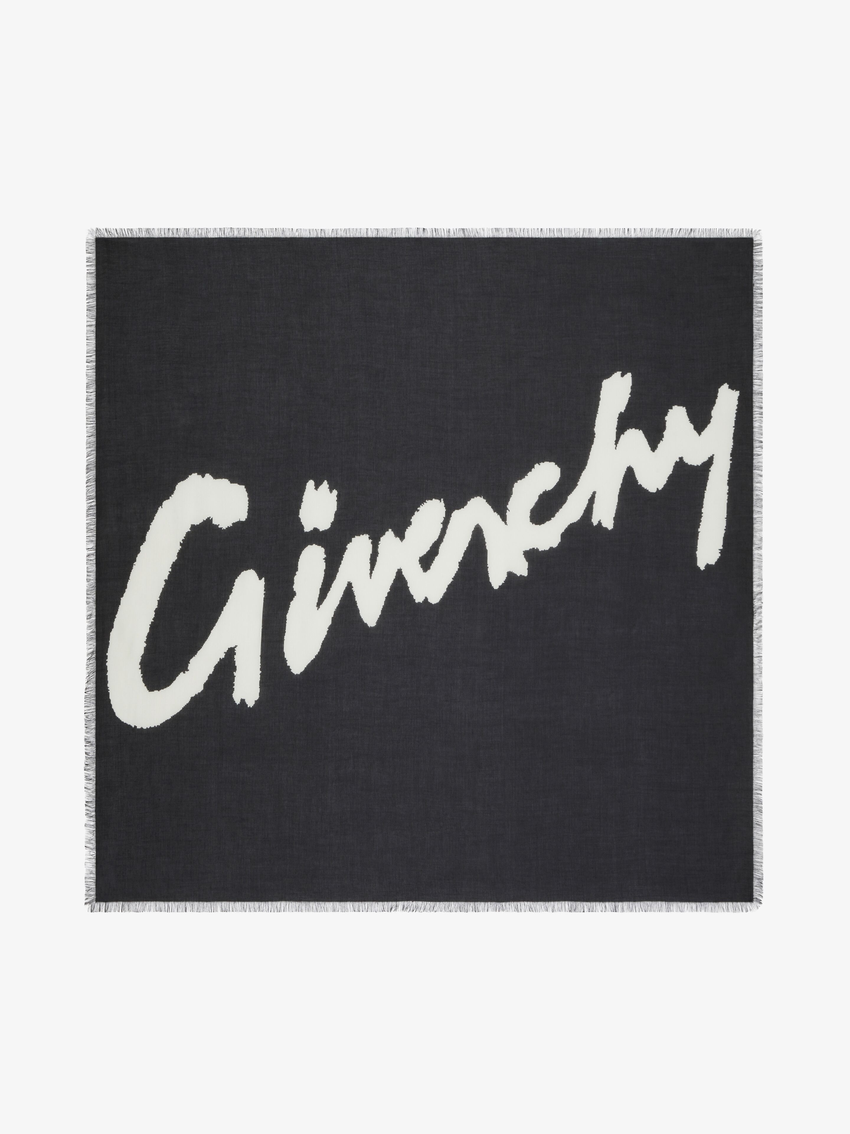 - Large square with italic GIVENCHY pattern. - Delicate frayed edges.