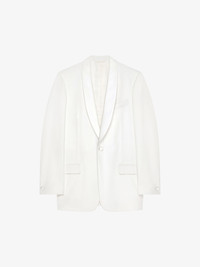 - Tuxedo jacket in wool and mohair. - Satin shawl lapel. - Buttoned closure. - Two side flap pockets. - Buttoned cuffs. - Satin lining with 4G pattern. - Classic fit. - Model measures 6.1 Feet and wears a size 48.