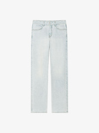 - Jeans in vintage denim. - Waist with loops and zipped closure with GIVENCHY metal bar. - Two front pockets. - Two back pockets and one hidden pocket on the back. - 4G metal rivets in the back. - Straight fit. - Model measures 6.1 Feet and wears a size 30.