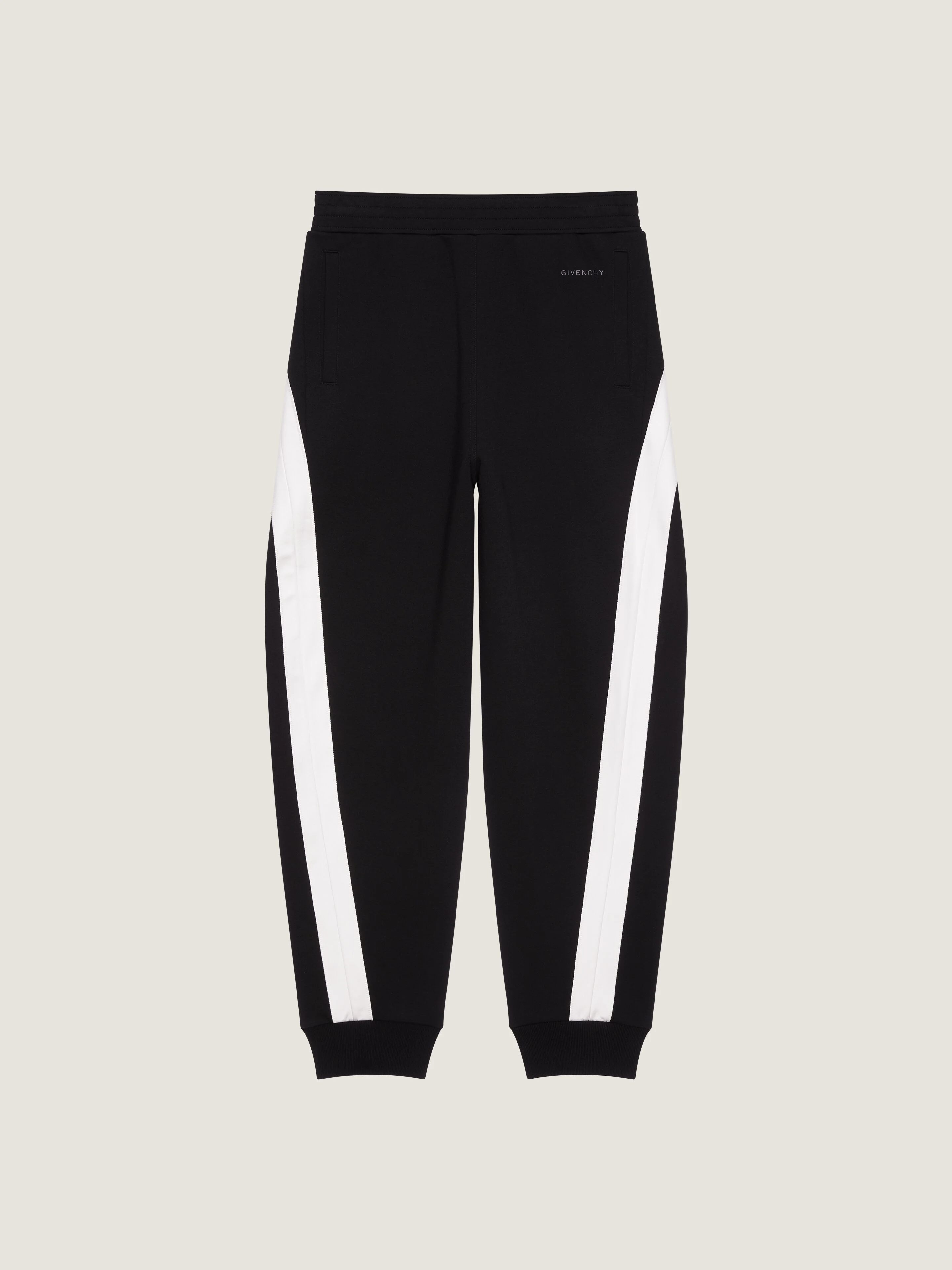 - Jogger pants in scuba. - Elastic waist. - Small GIVENCHY signature embroidered on the front. - Satin bands on the legs and back. - Two side pockets. - One back pocket. - Bias seams for a cocooning volume. - Relaxed fit. - Model measures 6.1 Feet and wears a size M.