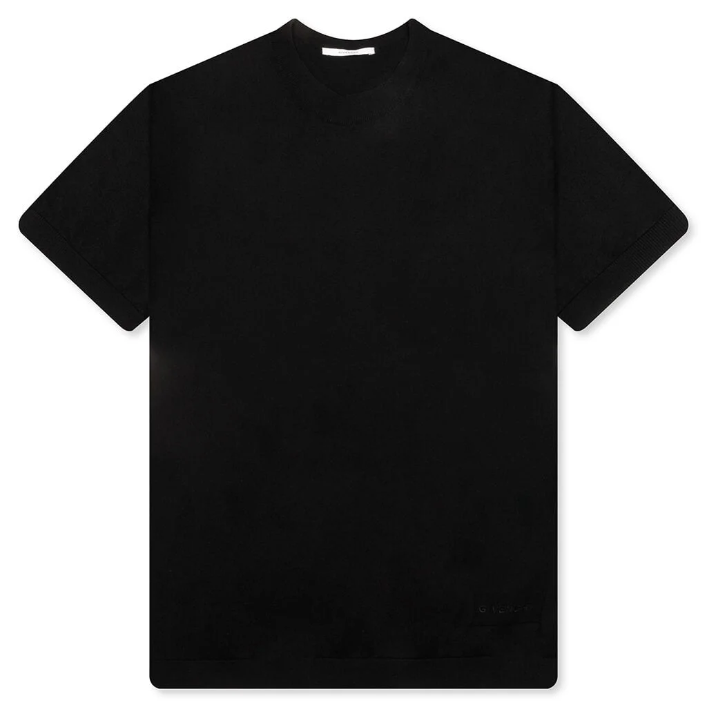 Embody the elevated aesthetics of the GIVENCHY brand with the Knit T-Shirt. Cut from cotton knit, the t-shirt features a crew neckline and short sleeves for an effortless silhouette. Ribbed trims at the collar, arm sleeves, and hem add structure to the piece. Finished with a tonal logo label above the hem for a branded touch. - 100% Cotton - Crew neckline - Logo label - Ribbed trims - Style No: BM71NM4YNP-001