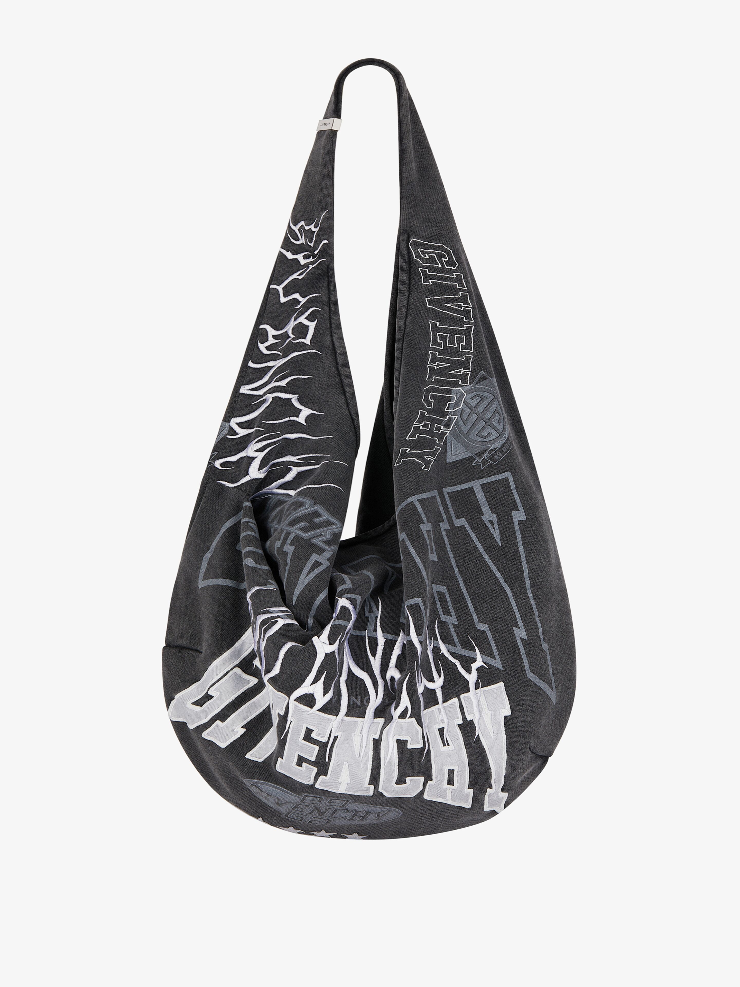 - Large sling bag in jersey with embroidered and printed GIVENCHY artwork, to be worn on the shoulder or crossbody and can fit perfectly your daily belongings. - G-Cruise line. - Adjustment metal buckle with GIVENCHY engraving. - One main compartment.