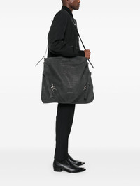 EXPERTLY CRAFTED FROM LUXURIOUS BLACK CALF LEATHER, THE LARGE VOYOU SHOULDER BAG BOASTS AN EMBOSSED CROCODILE EFFECT WITH A SLEEK MATTE FINISH. THE ICONIC LOGO STAMP AND BUCKLE-EMBELLISHED SHOULDER STRAPS ADD A TOUCH OF SOPHISTICATION. WITH AN ADJUSTABLE AND DETACHABLE SHOULDER STRAP, THIS ELEGANT BAG OFFERS VERSATILITY AND PRACTICALITY. THE SPACIOUS MAIN COMPARTMENT INCLUDES AN INTERNAL ZIP-FASTENING POCKET AND LOGO PATCH FOR ADDED ORGANIZATION. ELEVATE YOUR STYLE WITH THIS TIMELESS AND FUNCTIONAL ACCESSORY.