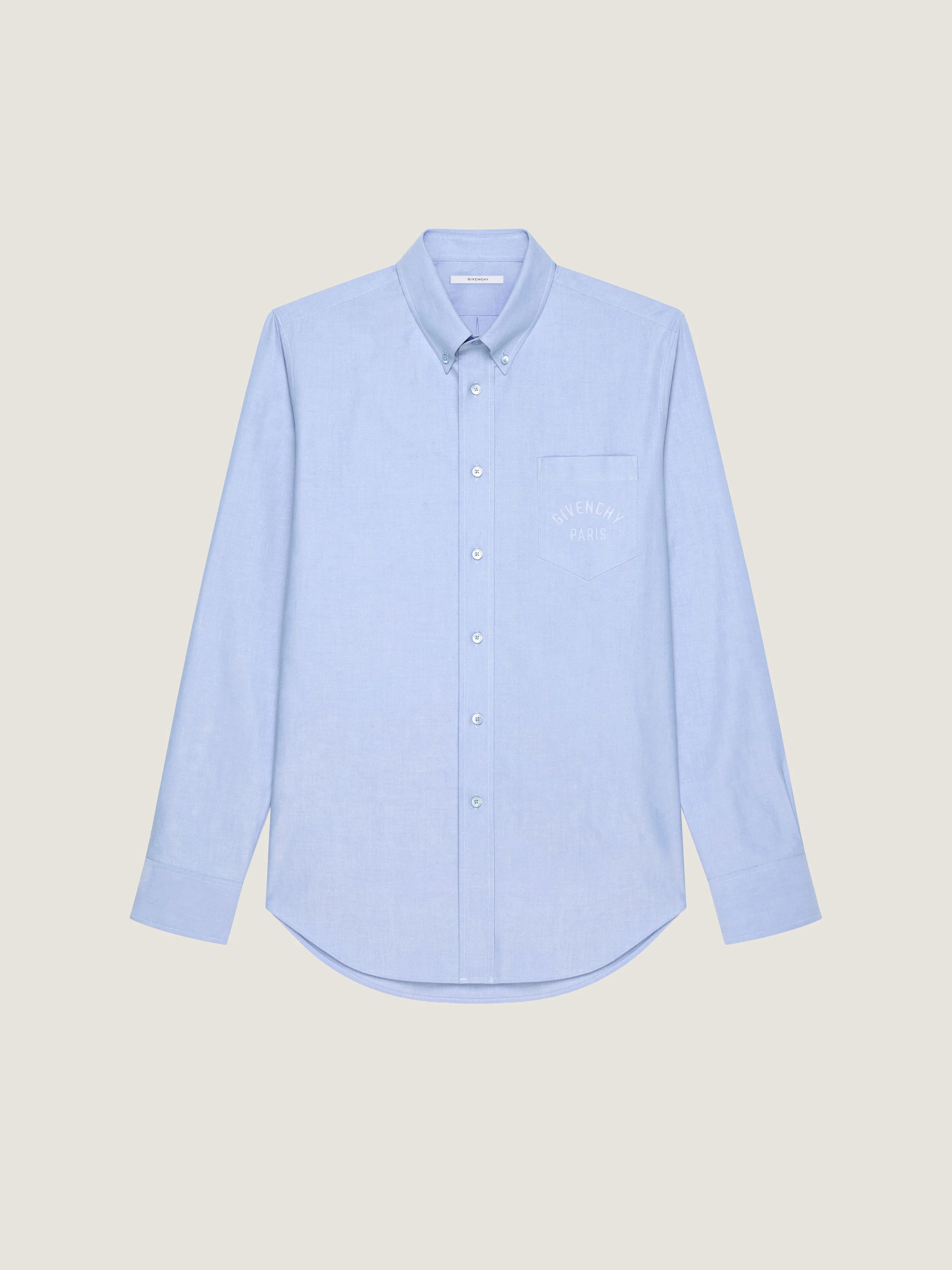 - Long-sleeved shirt in cotton. - Classic collar. - Small GIVENCHY Paris signature embroidered on the chest. - Button closure. - Buttoned cuffs. - Mother-of-pearl buttons. - One chest pocket. - Model measures 6.1 Feet and wears a size 39.
