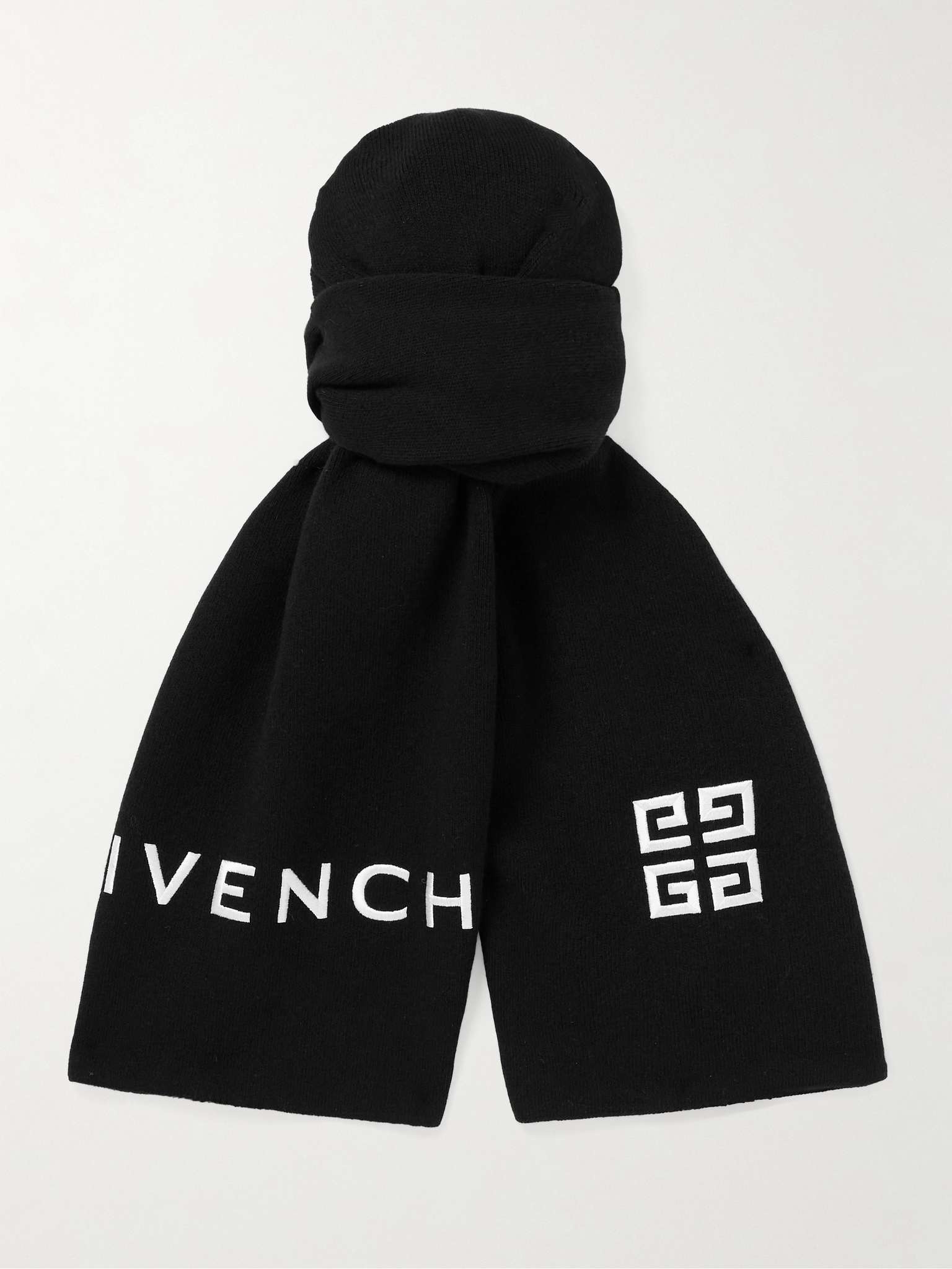 Givenchy's scarf is embroidered with logo lettering and a '4G' emblem, so it's the perfect gift for a fan of the brand. It's been made in Italy from a sumptuous wool and cashmere-blend and has a monochrome colourway that'll go with just about everything. Size & Fit - Length: 178cm / 70.1in - Width: 40cm / 15.7in Details & Care - Black wool and cashmere-blend - 70% wool, 30% cashmere - Dry clean