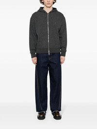 logo-embroidered zip-up hoodie Highlights - Grey - Virgin wool-cashmere blend - Embroidered logo at the chest - Drawstring hood - Front zip fastening - Two front pouch pockets - Long sleeves - Ribbed cuffs and hem Made in Italy Composition Virgin Wool 74%, Cashmere 22%, Polyamide 4% SIZE & FIT Model measurements Height 6 ft 2 in(1.87 m) Bust/Chest 37.4 in(95 cm) Hips 37 in(94 cm) Waist 31.49 in(80 cm) FittingInformation Designed to be unstructured, offering a loose fit throughout The ribbed hem offers a close, comfortable fit Made with a midweight knit, this piece offers some stretch This piece fits true to size – take your usual size