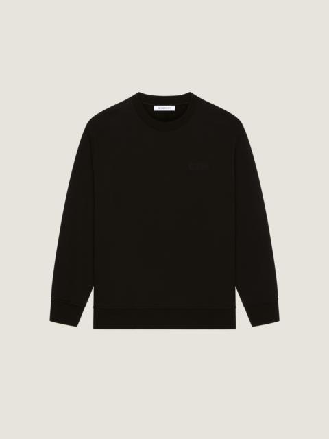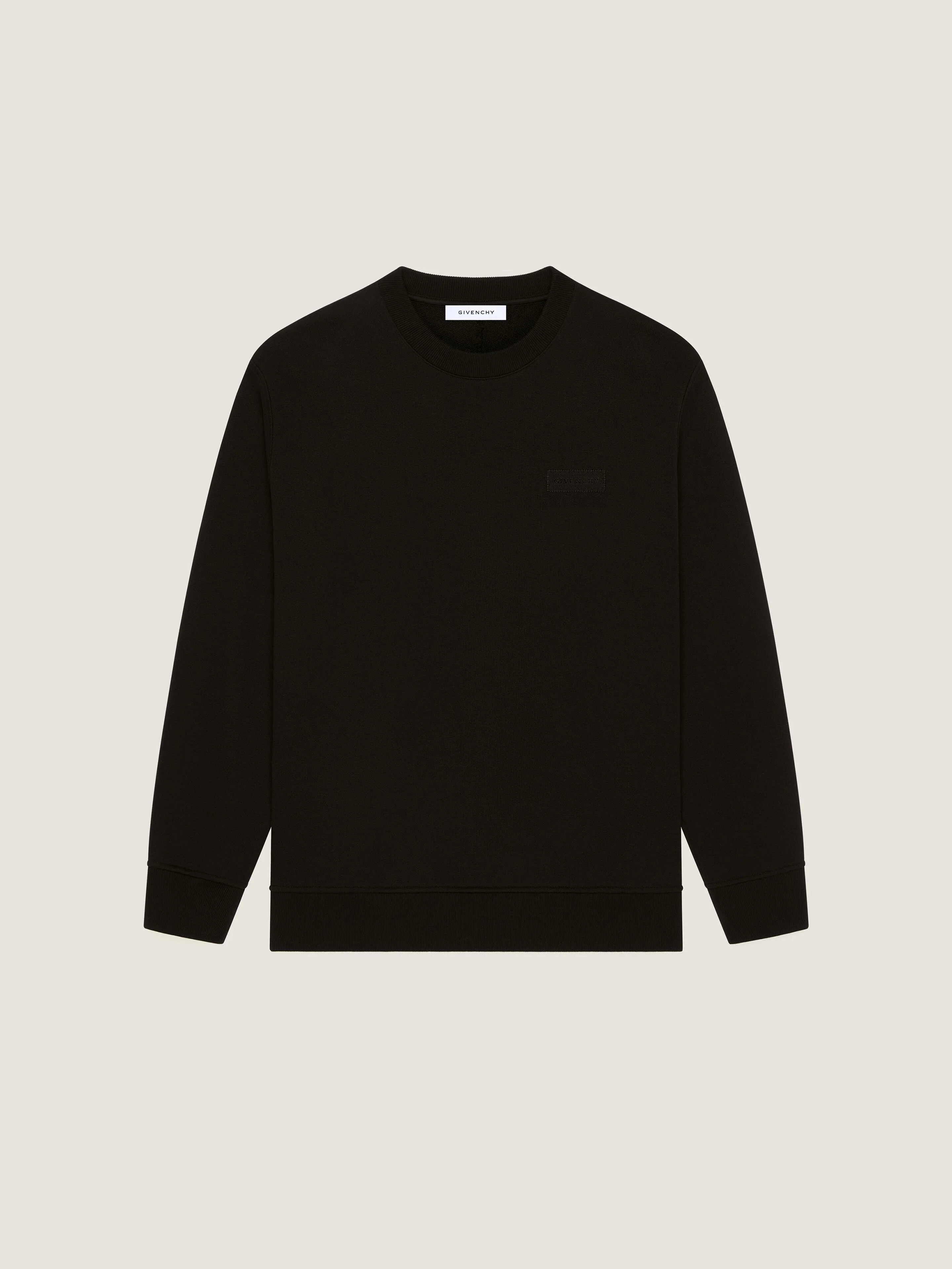- Long-sleeved sweatshirt in fleece. - Crew neck. - Gros grain patch with GIVENCHY signature and zigzag seams on the chest. - Ribbed collar, hem and cuffs. - Model measures 6.1 Feet and wears a size M.