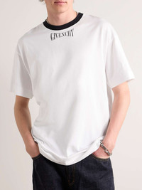 Givenchy's T-shirt has a retro feel with its contrast ringer neckline. It's cut for a regular fit from lightweight cotton-jersey and features a logo graphic on the chest. Size & Fit - Fits true to size. Take your normal size - Designed for a relaxed fit - Lightweight, stretchy fabric - Model is shown wearing a M - Model measures: chest 38"/ 96cm, height 6'2"/ 188cm Details & Care - White and black cotton-jersey - 100% cotton - Machine wash