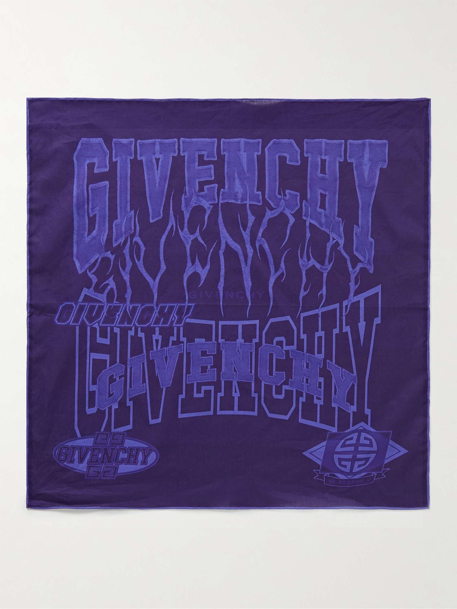 Givenchy's scarf is printed with its signature logo in a variety of cool typefaces. The lightweight cotton-voile makes it perfect to wear to a summer music festival. Size & Fit - Length: 45.5cm / 17.9in - Width: 46cm / 18.1in Details & Care - Tonal-purple cotton-voile - 100% cotton - Dry clean