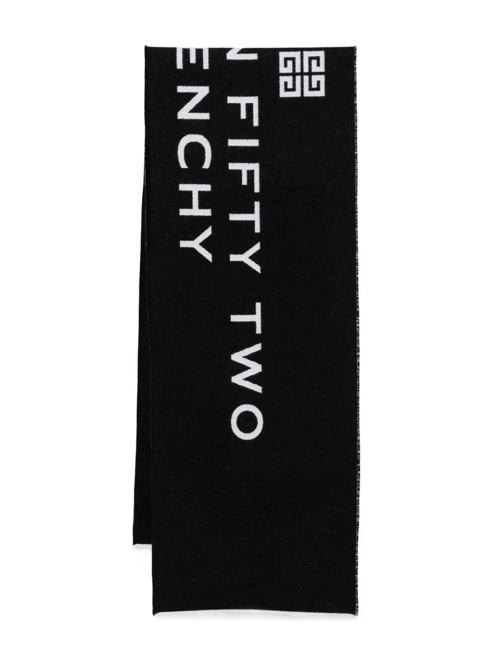jacquard-logo scarf Highlights - Black/white - Wool-silk blend - Jacquard logo motif - Wraparound style - Rectangle shape Made in Italy Composition Wool 92%, Silk 4%, Virgin Wool 4% SIZE & FIT Measurement LENGTH 70.86 in(180 cm) WIDTH 13.97 in(35.5 cm)