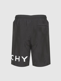 Long swim shorts. Elasticized waistband. Two pockets at sides. Single pocket at back. Graphic logo text at side. - 100% Polyester SKU: BMA00N1453004