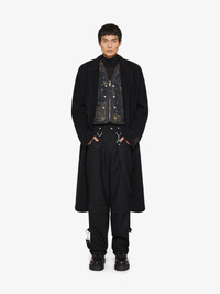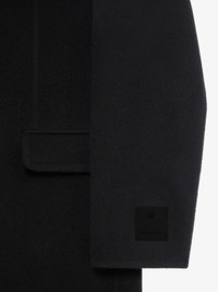 - Long coat in double face wool and cashmere. - Pointed collar with overlay effect. - Invisible button closure. - GIVENCHY label on the left cuff. - Two front flap pockets. - Classic fit. - Model measures 73.2 in and wears a size 48.