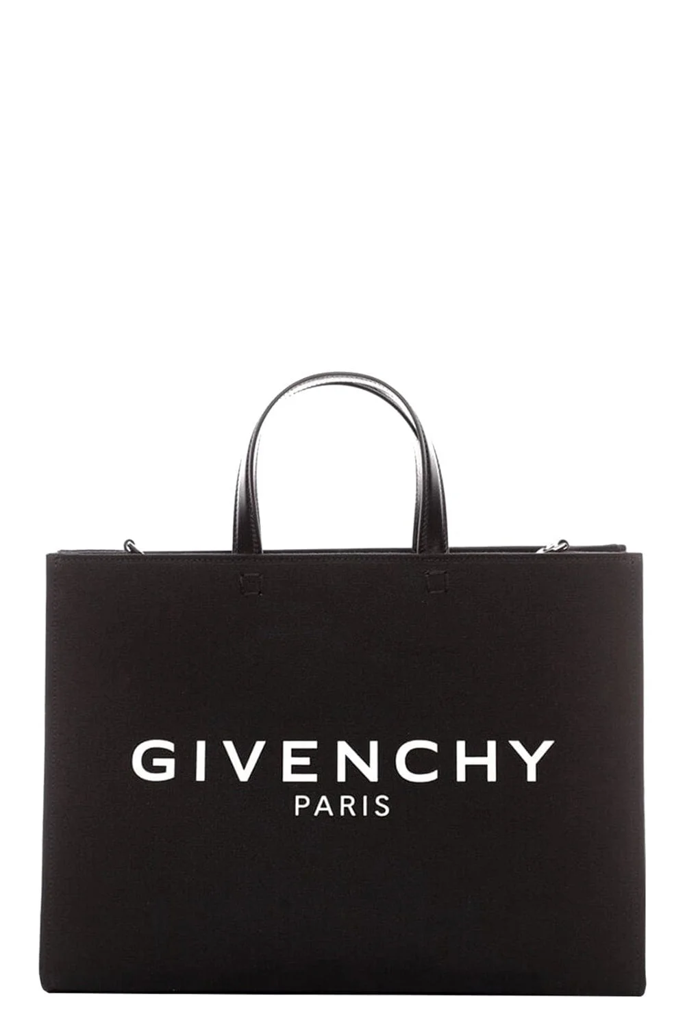 DETAILS AND INSIGHT Givenchy medium g tote in black. Length: 14.5" Height: 10.6" Depth: 5.5" 48% Cotton 48% Flax 4% Polyurethane Made in Italy Style BB50N2B1F1001