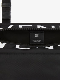 - Medium crossbody bag in nylon. - Pandora line. - Metal zipped closure with leather zipper pulls and wide opening to easily access your belongings. - Adjustable webbing shoulder strap to wear it in different ways: crossbody, on the shoulder. - Contrasting GIVENCHY signatures on the top and on the shoulder strap. - Metal buckles bringing fluidity to the bag. - Silvery-finish metal details. - One main large zipped compartment with one zipped flat inside pocket. - One zipped pocket on the back. - Canvas lining.