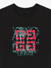 - In collaboration with Tomo Campbell, London based artist who focuses on contemporary artworks, Givenchy House presents an artistic Summer 25 capsule collection for men. Tomo reinterprets the iconic 4G, introducing a fresh color palette and a line sketch drawn from his own artwork. - Short-sleeved t-shirt in cotton. - Crew neck. - 4G emblem printed on the front. - Artwork by Tomo embroidered on the front. - Small GIVENCHY signature embroidered on the sleeve. - Classic fit. - Model measures 6.1 Feet and wears a size M.