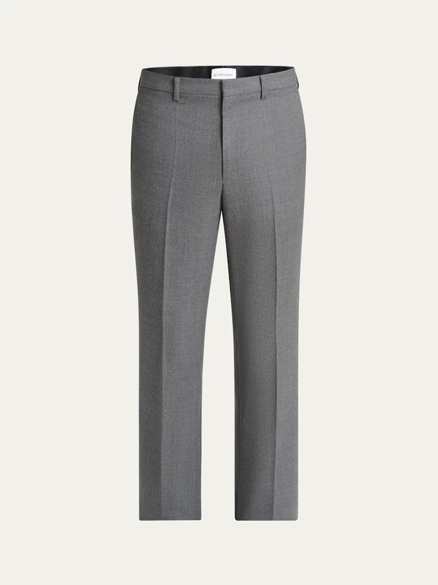 Givenchy formal suiting trousers feature a sharp pressed crease down the front for a polished, modern look Flat front Side slip pockets; back besom pockets Classic fit Ankle length Hook/zip front Wool Made in Italy