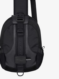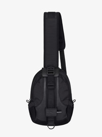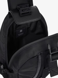 - Crossbody in nylon and textured leather. - G-Trail line. - Zipped closure. - One adjustable padded Givenchy webbing strap to wear on the chest or as a small backpack. - Padded back for comfort. - Webbing strap on the front with reflective GIVENCHY signature and 4G buckle clip closure. - Decorative scratch on the front with Giv Cut signature and metal D-Ring. - Black and silvery-finish metal details. - One main large compartment. - Two bottle compartments in mesh with drawstring on the sides.