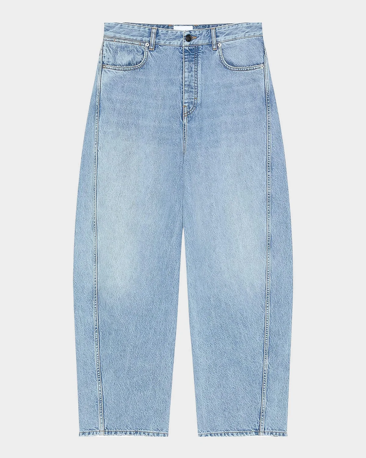 Givenchy jeans are crafted from light stonewashed denim accented with a leather logo patch on the back and slight fading and whiskering Regular rise Fivepocket style Curved barrel legs Full length Button/zip fly; belt loops Cotton Made in Italy