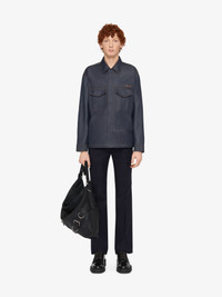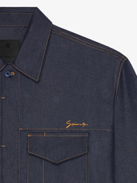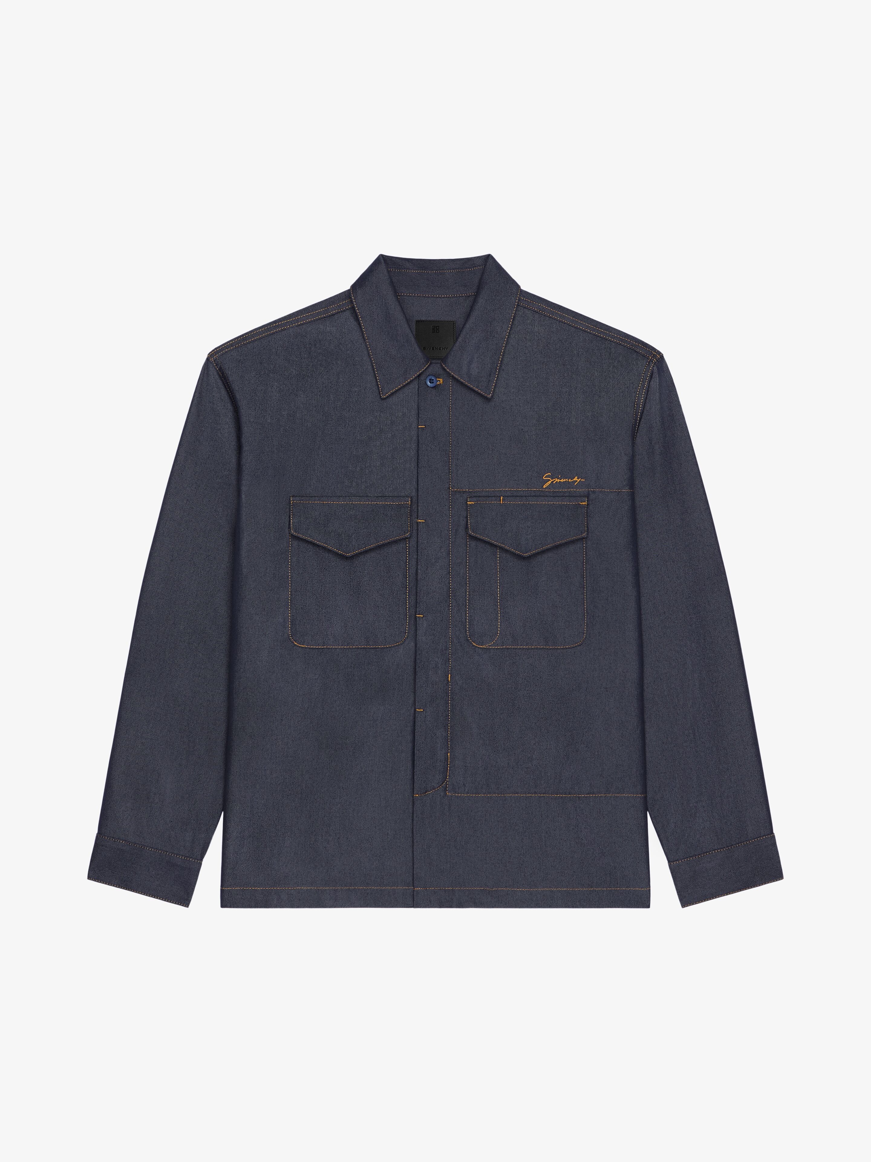 - Long-sleeved shirt in silk denim. - Classic collar. - Small GIVENCHY signature embroidered on the front. - Button closure. - Buttoned cuffs. - Two chest flap pocket. - Classic fit. - Model measures 6.1 Feet and wears a size M.