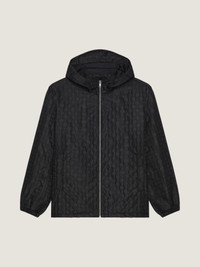 - Windbreaker in recycled fiber. - Stand-up collar with hood. - Monogram 72. - Zipped closure. - Two side pockets. - Elastic hem and cuffs. - Mesh lining. - Model measures 6.1 Feet and wears a size 48.
