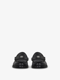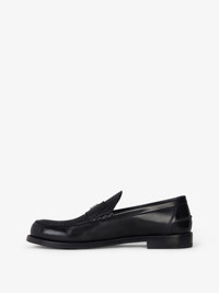 - Loafers in brushed bull leather. - Mr G line. - Leather band with silvery-finish 4G metal piece on the top. - Handmade stitching on the back. - Silvery GIVENCHY signature on the leather insole.