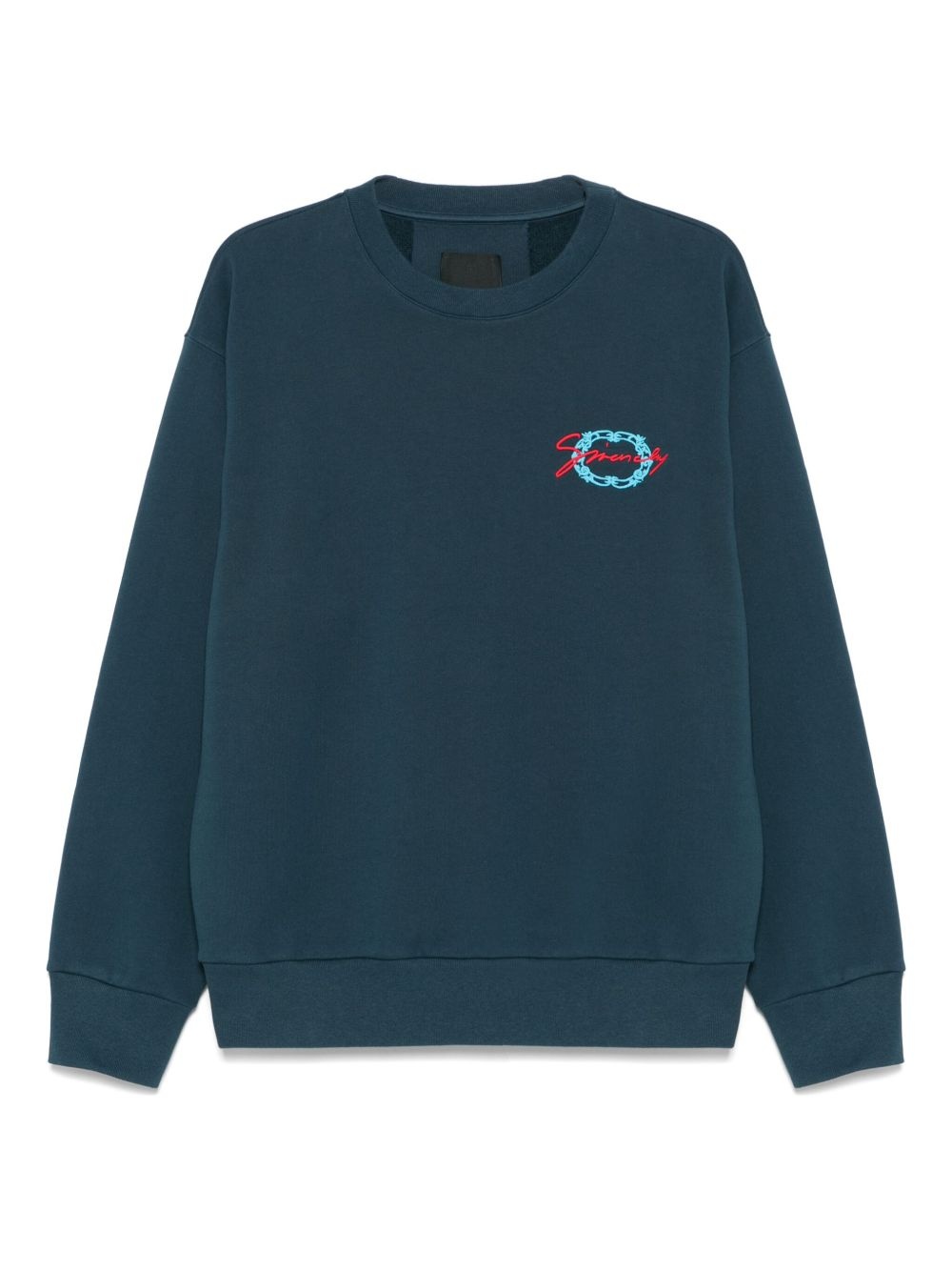 Givenchy medallion-embroidery sweatshirt Highlights - Navy blue - Crew neck - Long sleeves - Ribbed trim Imported Composition Cotton 100% SIZE & FIT Model measurements Height 6 ft 2 in(1.87 m) Bust/Chest 37 in(94 cm) Hips 33.85 in(86 cm) Waist 27.95 in(71 cm) FittingInformation Designed to be unstructured, offering a loose fit throughout The ribbed hem offers a close, comfortable fit Made from a midweight non-stretch fabric, this piece offers minimal elasticity when worn