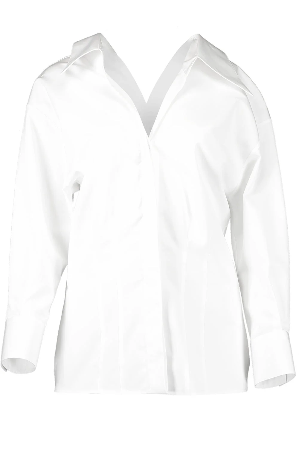 DETAILS AND INSIGHT Givenchy opened collar blouse in white. 100% Cotton Wash Inside Out In A Net With Similar Colors At Recommended Temperature No Tumble Drying Soft Dry Cleaning Authorized Iron Inside Out Made In Italy Style BW61JH1634100-WHITE