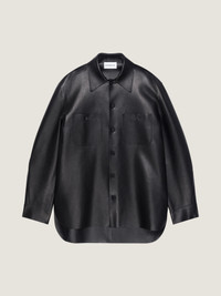 - Overshirt in nappa leather. - Classic collar. - GIVENCHY signature debossed on the button tab. - GIVENCHY leather buttons. - Button closure. - Buttoned cuffs. - Two chest pockets. - Bias seams for a cocooning volume. - Model measures 6.1 Feet and wears a size 48.