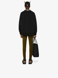 DETAILS - Sweatshirt in soft brushed felpa. - Color: black. - Raglan sleeves. - White Gothic-effect GIVENCHY signatures printed on the front. - Slanted metal zipper with GIVENCHY zipper pull and 4G rivet on the collar. - Metal eyelets on the sides. - Comfortable oversized fit. - Composition : 100% cotton. - Country of origin: Portugal. - Maximum wash 30°C, delicate cycle - Iron at maximum soleplate temperature (110°C) without steam - Do not tumble dry - Do not bleach - Do not dry clean - Product code: - BMJ0C23Y69-001 SIZING -Dimensions of size S: center back length 29.52 inches, 1/2 shoulders width 24.40 inches, 1/2 chest width 29.52 inches, 1/2 bottom width 22.04 inches. -Dimensions of size M: Center back length 29.92 inches ; Shoulders width 25.19 inches ; Chest width 30.31 inches ; Waist width 22.83 inches. -Dimensions of size L: center back length 30.31 inches ; 1/2 shoulders width 25.59 inches ; 1/2 chest width 30.70 inches ; 1/2 bottom width 23.22 inches.