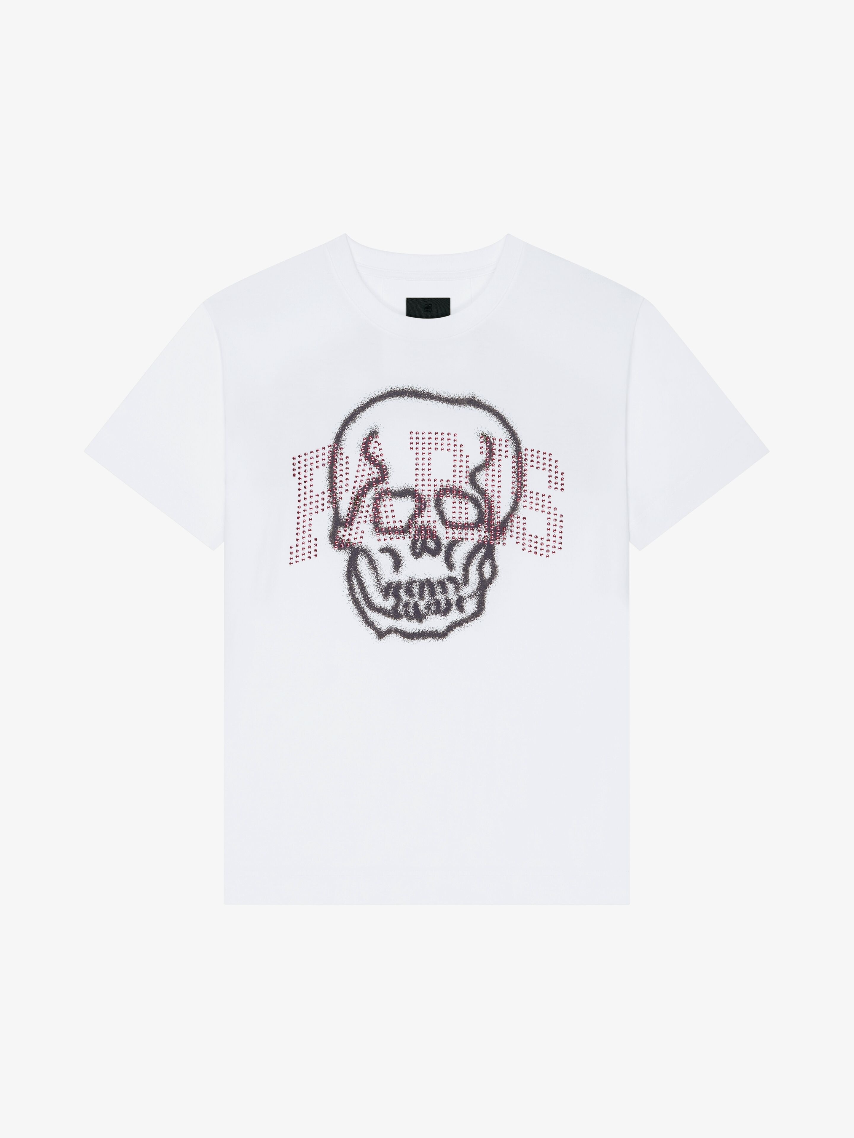 - Short-sleeved t-shirt in cotton. - Crew neck. - PARIS skull printed with rhinestones on the front. - GIVENCHY signature printed on the back. - Oversize fit.
