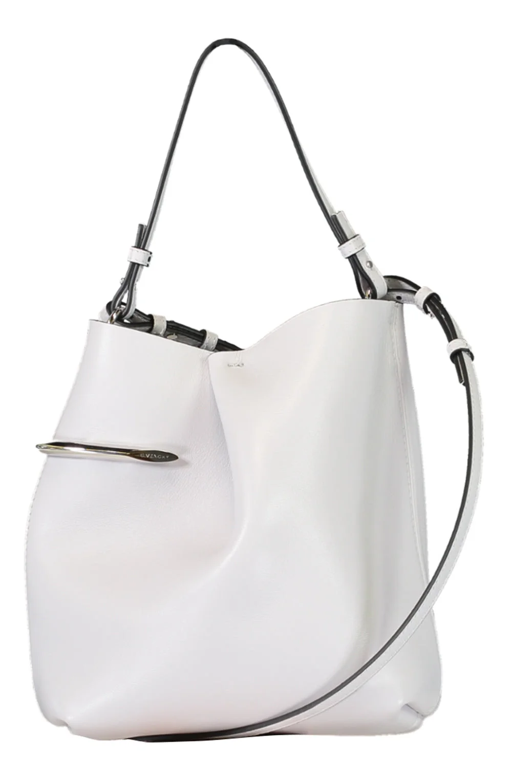 DETAILS AND INSIGHT Givenchy pinch me pouch in cloud grey. 100% Lamb Leather 19.00X12.00X19.00 Made In Italy Style BB516JB2EK057