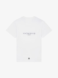 - Short-sleeved t-shirt in cotton. - Crew neck. - Reverse-effect GIVENCHY Paris signature printed on the front and back. - Small 4G emblem printed on the lower back. - Slim fit. - Model measures 6.1 Feet and wears a size M.