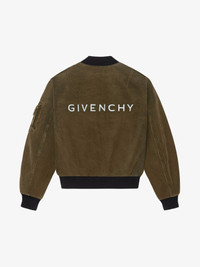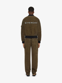 - Reversible bomber jacket in denim with faded sprayed artwork. - Lining in synthetic fiber with two snap pockets on the front and 4G emblem on the back. - Zipped closure. - Ribbed elasticated knit collar, hem and cuffs. - Classic fit. - Model measures 73.2 in and wears a size 48.