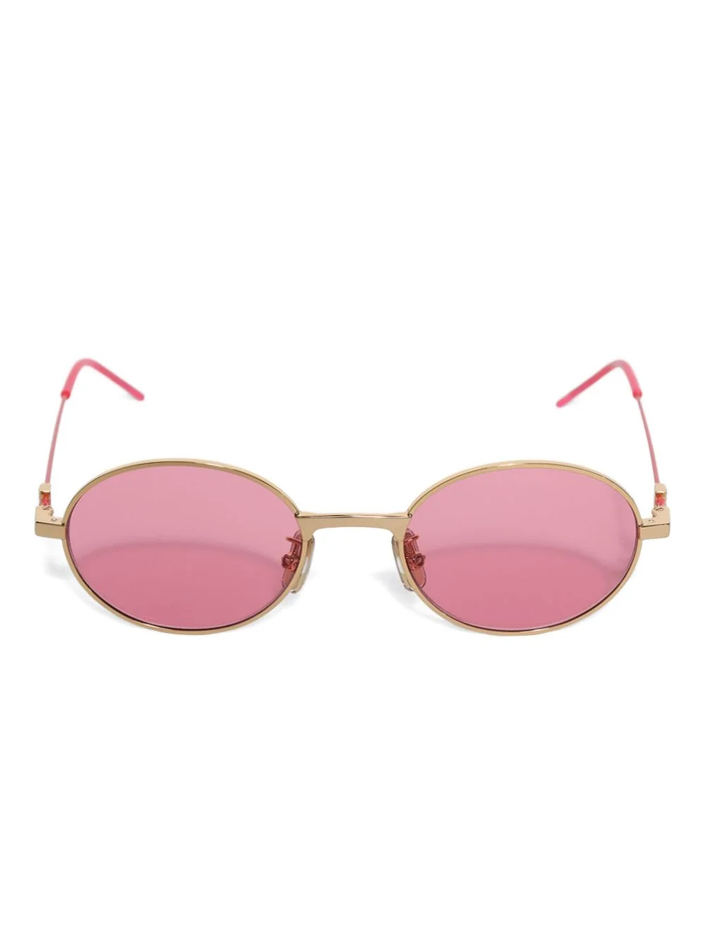 round-frame sunglasses Highlights - Gold - Round frame - Pink lenses - Nose pads - Thin arms - Logo detail at the temple - These glasses come with a protective case. Imported Composition Metal 100%