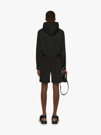 - Shorts in textured nylon jacquard with 4G motif. - Color: black. - Two side pockets with metal zipper, GIVENCHY zipper pull and 4G rivet. - Two welt pockets on the back. - Comfortable elastic waistband.