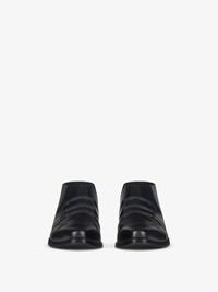 - Low cowboy ankle boots with pointy toe in shiny leather. - Show line. - Leather-covered elastic on the inside. - Pleated effect on top. - GIVENCHY signature debossed on the leather insole. - Heel height : 2 in.