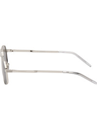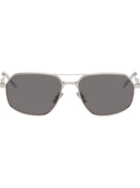 Aviator-style metal-frame sunglasses. · Gray lenses · 100% UVA/UVB protection, category 3 · Double bridge · Adjustable rubber nose pads · Logo engraved at temples · Transparent acetate trim at temple tips · Includes pouch · Size: 57.18 145 Supplier color: Shiny palladium Metal, acetate. Made in Italy 261278M134008