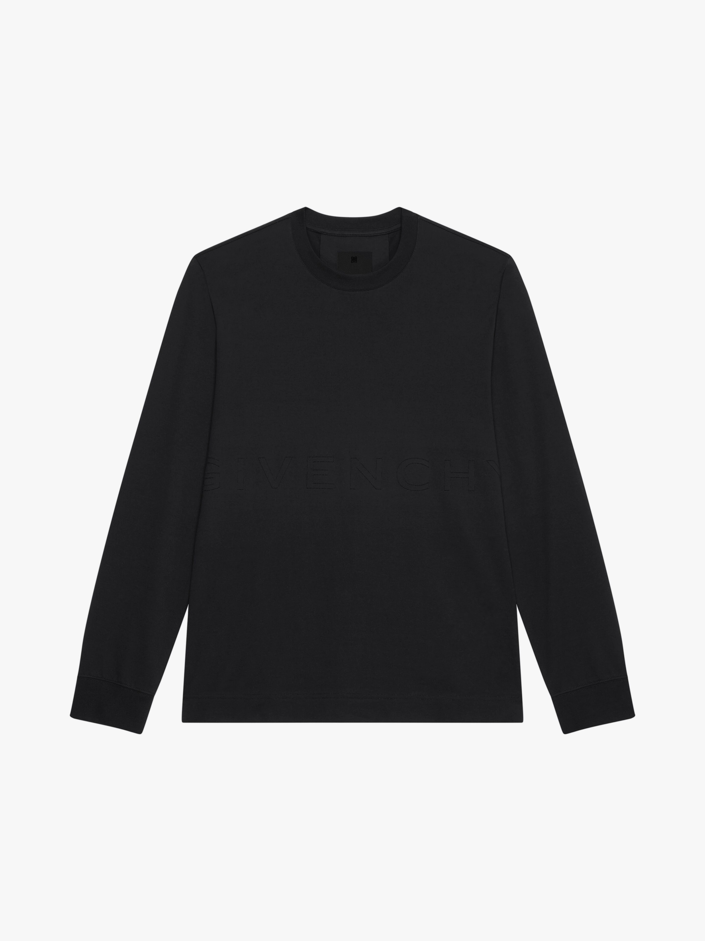 - Long-sleeved T-shirt in soft jersey. - Color: black. - Tone-on-tone GIVENCHY signature heat-bonded on the chest. - Tone-on-tone 4G emblem heat-bonded on the back. - Slim fit.