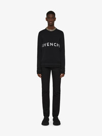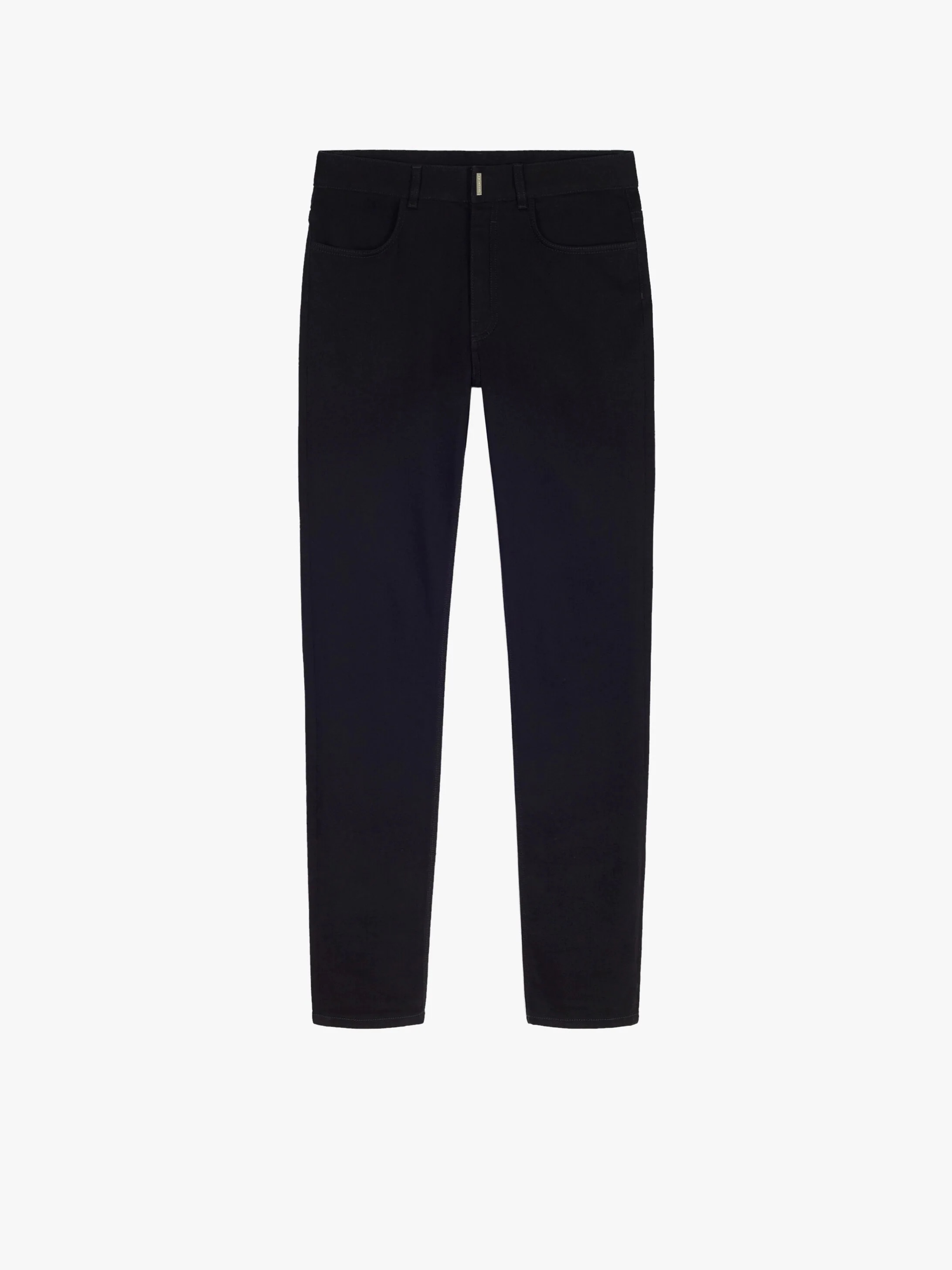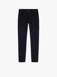 - Jeans in stretch denim. - Waist with loops and zipped closure with GIVENCHY metal bar. - Two front pockets. - Two pockets and one hidden pocket on back. - 4G metal rivets in the back. - Slim fit. - Model wears a size 29.