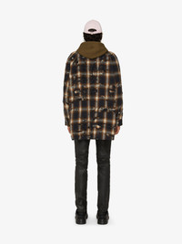 - Ripped-effect stretch denim jeans. - Color: black. - Rips and topstitching with worn and mended effect. - Metal GIVENCHY-engraved barrette closure. - Two side pockets. - Two patch pockets and one hidden pocket with 4G rivets on the back. - Slim fit.