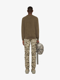 - Slim-fit jeans in destroyed denim, with worn- and mended-effect rips and topstitching all over. - Metal GIVENCHY barrette closure. - Two pockets with metal zippers on the legs. - Two side pockets. - Two patch pockets and one hidden pocket with 4G rivets on the back.