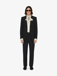 - Tailored pants in technical wool. - Snap buttons closure. - GIVENCHY engraved 2G clip in metal and mother of pearl. - Two side pockets. - Two back pockets. - Slim fit. - Model measures 6.1 Feet and wears a size 48.