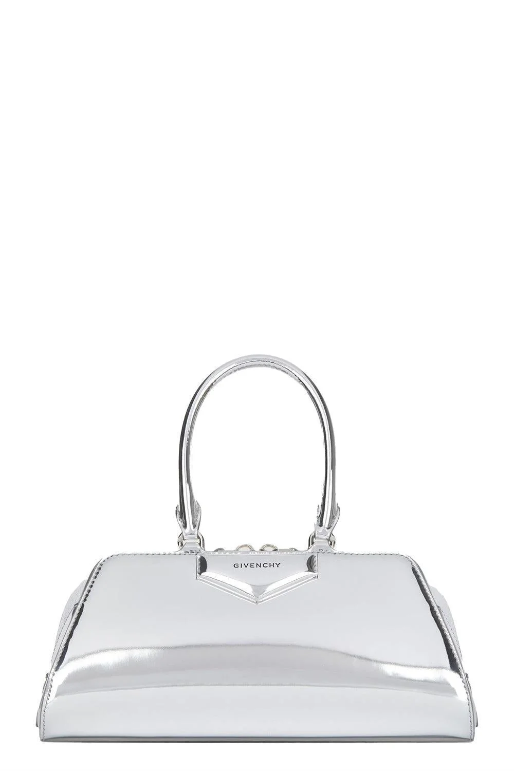DETAILS AND INSIGHT Givenchy small antigona bag in light silvery. 100% Calf Leather 27.50X14.50X12.00 Fits Iphone 16 Pro Max Made In Italy Style BB5130B29U934