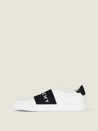 - Low sneakers in soft calfskin leather. - Urban Street line. - Wide elastic band with raised GIVENCHY Paris signature on the top. - GIVENCHY Paris signature on the back of the heel. - GIVENCHY Paris signature printed on the leather insole. - Flexibility and comfort.